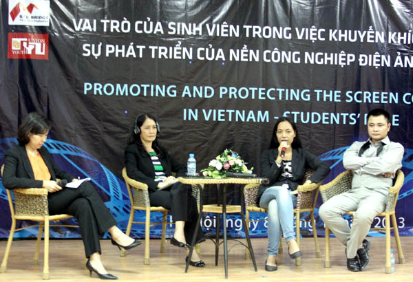 Kết hợp với các nhà làm phim thực hiện. Chỉ khi tạo ra một thị trường lành mạnh. Để tránh gặp phiền toái trong công việc sau này. Tại Đại học Ngoại thương (Hà Nội) diễn ra cuộc hội thảo kéo dài cả ngày về “Vai trò của sinh viên trong việc khuyến khích và bảo vệ nền công nghiệp điện ảnh Việt Nam” do Hiệp hội Điện ảnh Hoa Kỳ (MPA) phối hợp với Công ty Dịch vụ phim Cầu Nối Đỏ và Đại học Ngoại thương tổ chức.